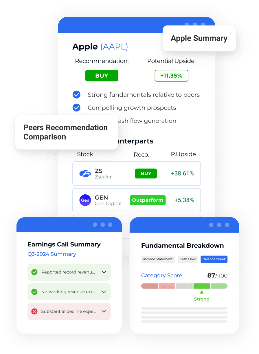 Provide actionable insights for any stock across multiple categories including fundamental, technical, ESG analysis, and more, helping investors make informed decisions.